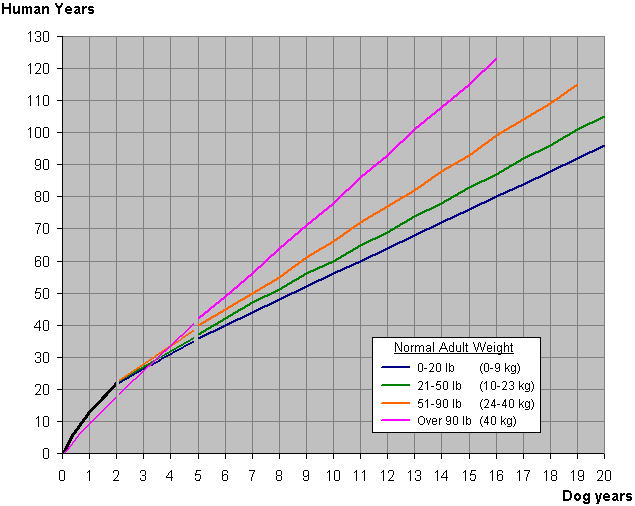 For years I’ve heard the ratio was 7 to 1, but I recently found out that is not it at all. According to the interwebby thingy this is the equation: For the first two years, a dog year is equal to 10.5 human years. After that, each dog year equals 4 human years. This calculation is based on studies that indicate dogs, except maybe larger breeds, develop more quickly in the first two years of life. Well that was as clear as mud, but it covers the ground and left me more confused than I was an hour ago. A dog is 16 (Our Years) so using the times 7 that is 112 their years