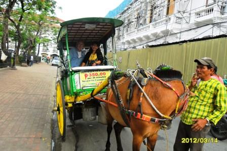 Later in the morning while at the Manila Cathedral (Which by the way is now a Minor Basilica according to the sign) where we encountered the place to hire a Calisa. Using information gleaned from John’s post I was forearmed with knowledge of the cost per hour.