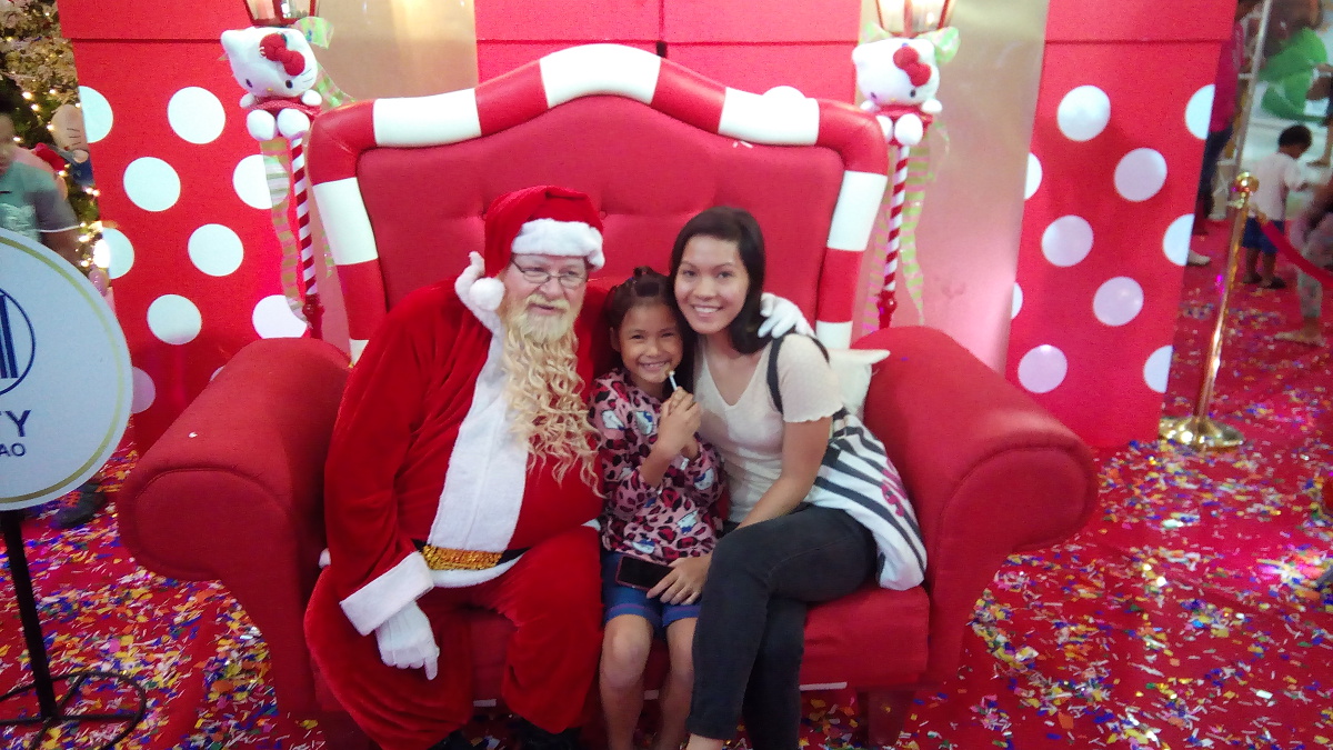 Last weekend was a busy time for Santa Bob. Started off last Friday night, Bob was hired by SM Ecoland (Davao City) to be their Santa. It was the lighting of their Christmas trees there. They had 2 trees side by side with “Hello Kitty” decorations. I think that’s the themes of all SM stores nationwide.